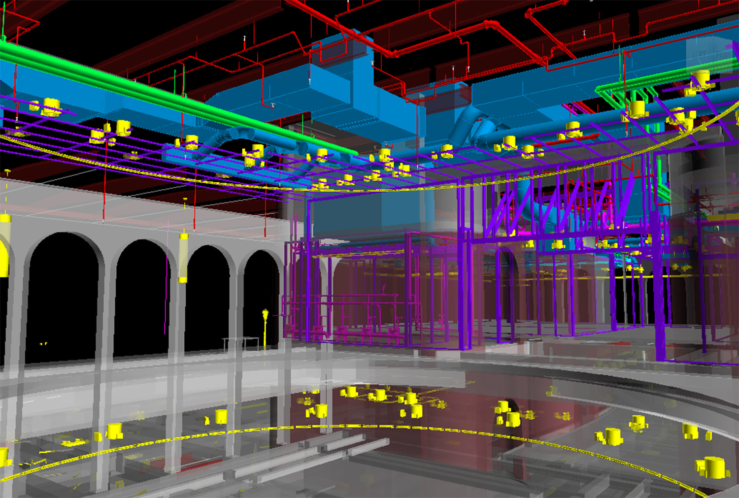 Using Navisworks and the suite of VDC tools, detailed MEPF and structural models are continually developed to ensure a clash-free federated model ready for construction. This allows extensive collaboration among owner, design team, and subcontractors to assure the most cost-effective and efficient field-installation process is achieved.
